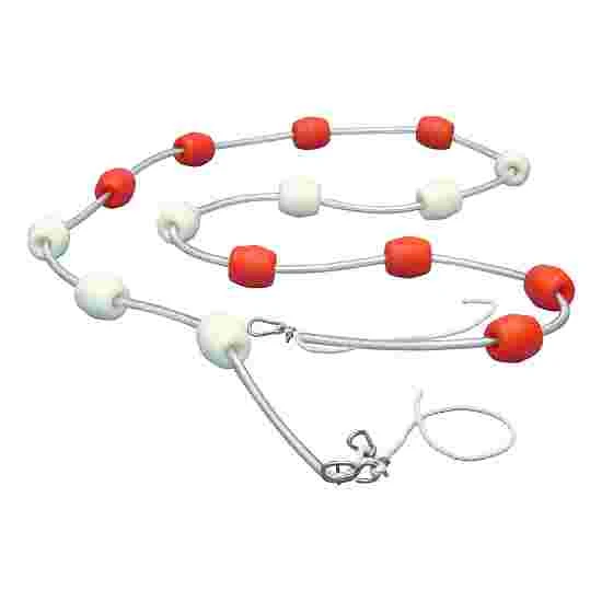 With the Sport-Thieme swimming lane line, individual lanes can be clearly identified both in indoor and outdoor pools. The swimming lane line consists of white and red Hostalen floats fixed on a Multilon or stainless steel rope. At both ends of the line, there are 5 m of red floats; the middle alternates between 100 cm of white and 100 cm of red floats. Additional spacers between the individual floats keep them in place at a distance of 25, 50 or 100 cm (depending on the model). The Sport-Thieme swimming lane lines come with end attachments.
